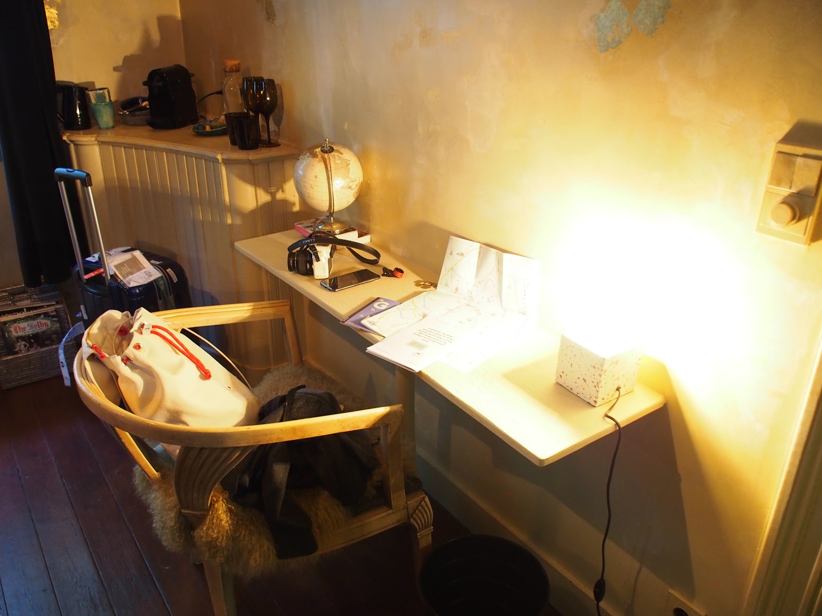 獨立衛浴,但沒有廚房。木拼接的地板,很有老房子的味道,卻翻新的很舒適!