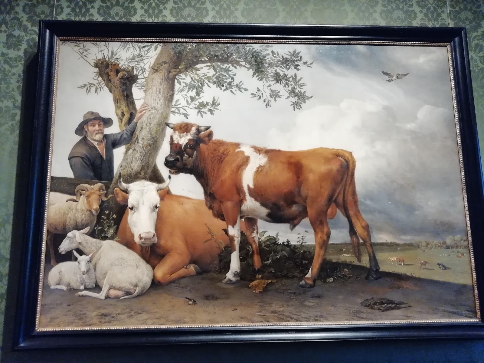 儘管面積很大,但他仍然非常注意最小的細節,例如天空中的雲雀,草地上的陽光,公牛背上的蒼蠅以及牛的鬍鬚。這使得這幅畫成為荷蘭自然主義繪畫的縮影。