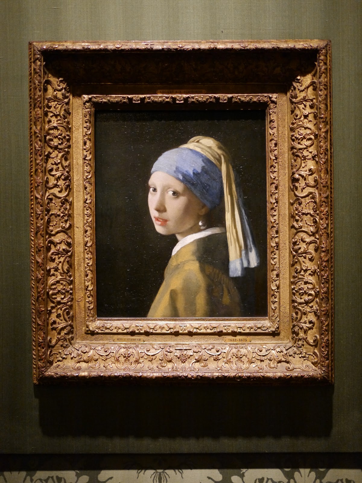 這幅畫是維梅爾最著名的作品之一,也是莫里斯宮皇家美術館的鎮館之寶。這不是一幅肖像畫,而是一個虛構人物的畫像---這是17世紀荷蘭流行的一種名為tronie的畫法,與肖像畫有異曲同工之妙,但背景通常為深色,也不會留下其他暗示模特兒身分的線索,著重表現人物的情緒。在這幅畫中,這位女孩身穿異國服裝,帶著來自東方的頭巾,耳朵上帶著過大的珍珠耳環。她回頭凝望著觀者,從而打破時空的隔閡,讓觀者產生一種就是自己讓少女回眸的錯覺,而少女謎樣雙眼與微啟朱唇,更讓畫面充滿想像的吸引力。維梅爾是善池運用光線的大師。這可以從女孩臉上的柔和感看出來,還有她嘴唇上的光澤,以及珍珠。