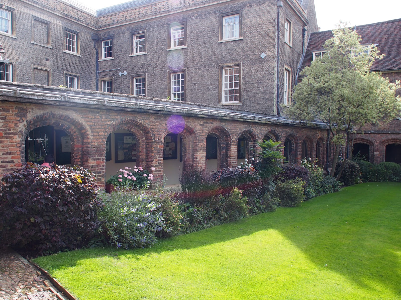 迴廊小徑建於14世紀90年代,用於連接舊庭院和劍河邊的建築,從而形成了庭院,因此被稱作迴廊庭院。