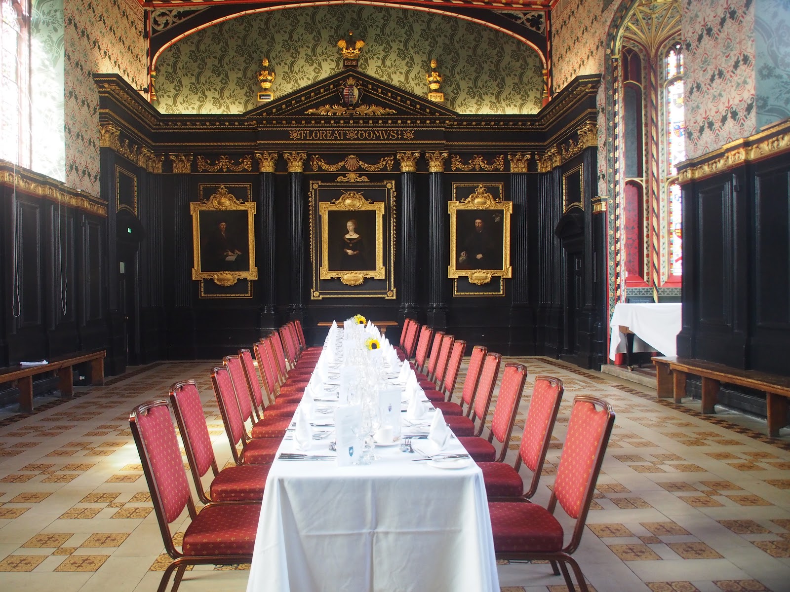 ▲皇后學院The old hall,裝飾著彩繪玻璃及花草壁飾