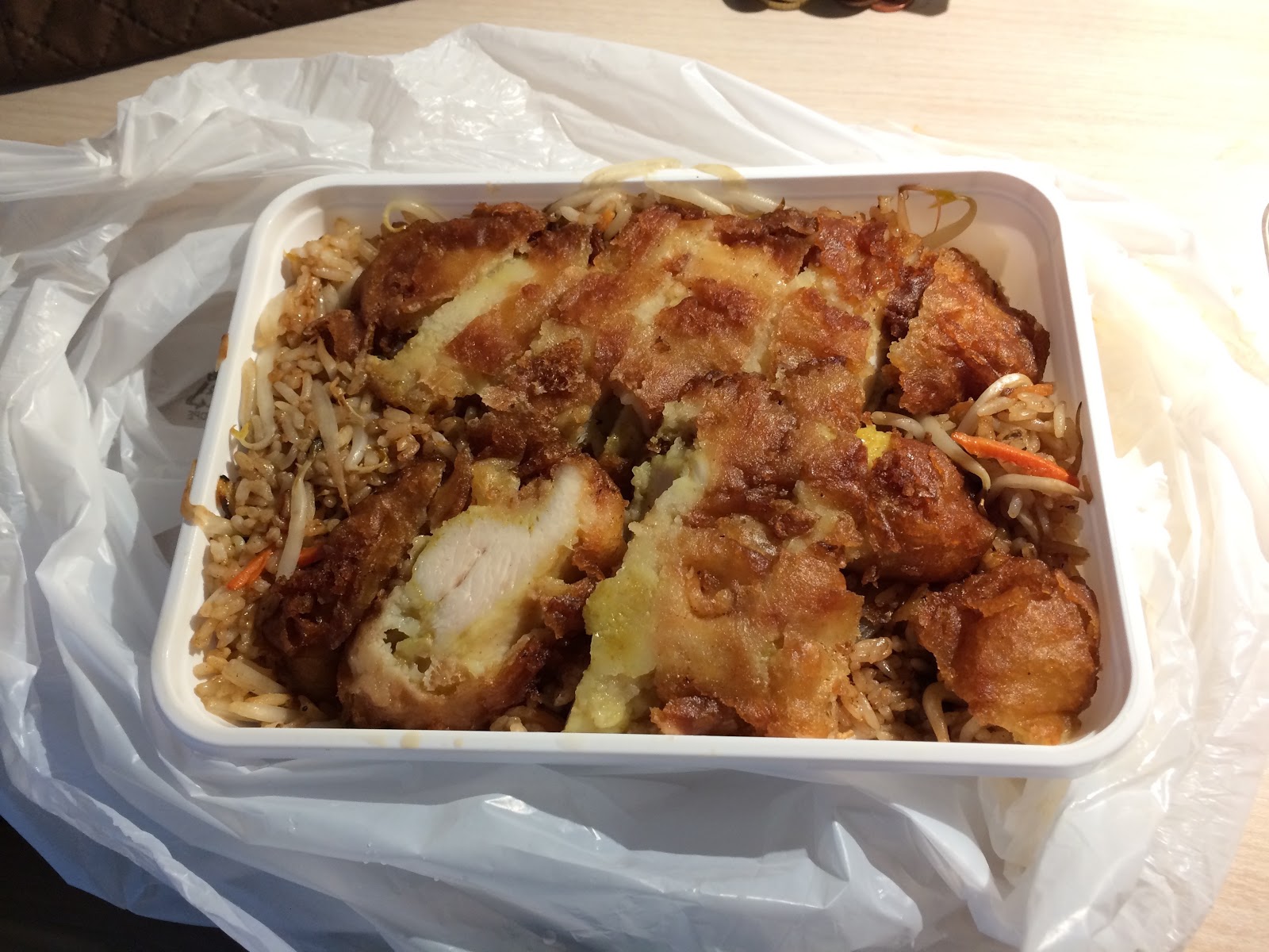 雞腿炒飯看起來挺油的,吃起來也是~~