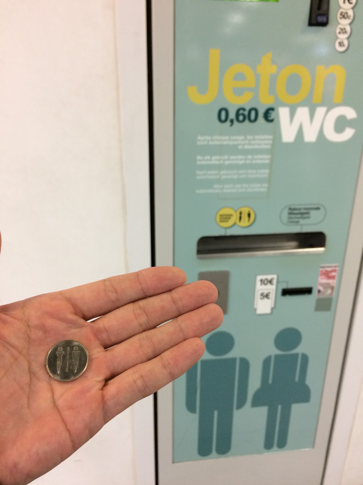 ▲想上廁所,要花0.6歐元買個票喔~~
