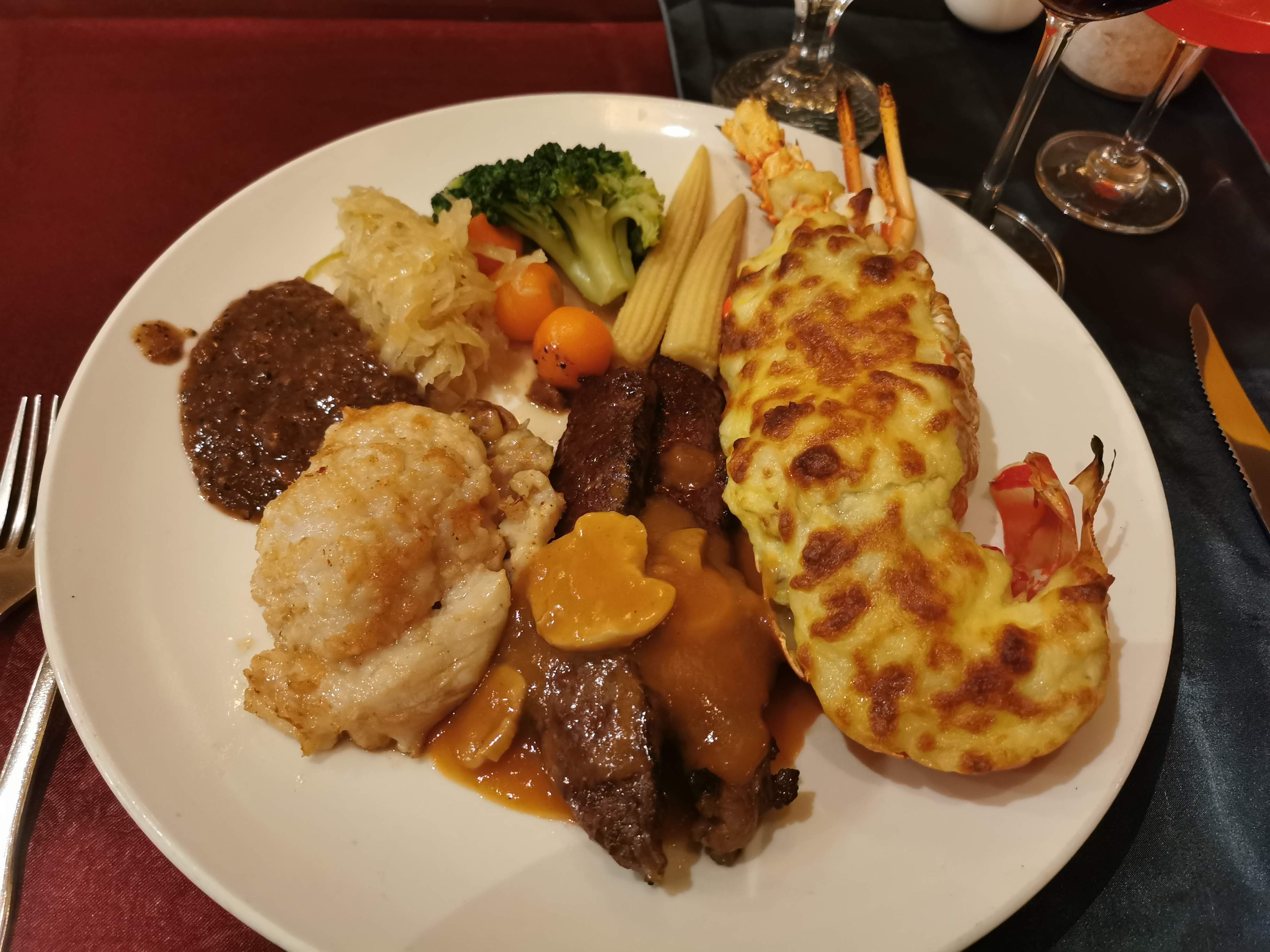 ▲豆腐選的海陸特餐(1/2龍蝦、鮑魚、紐西蘭牛排)