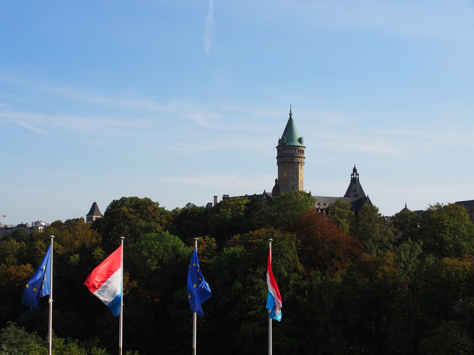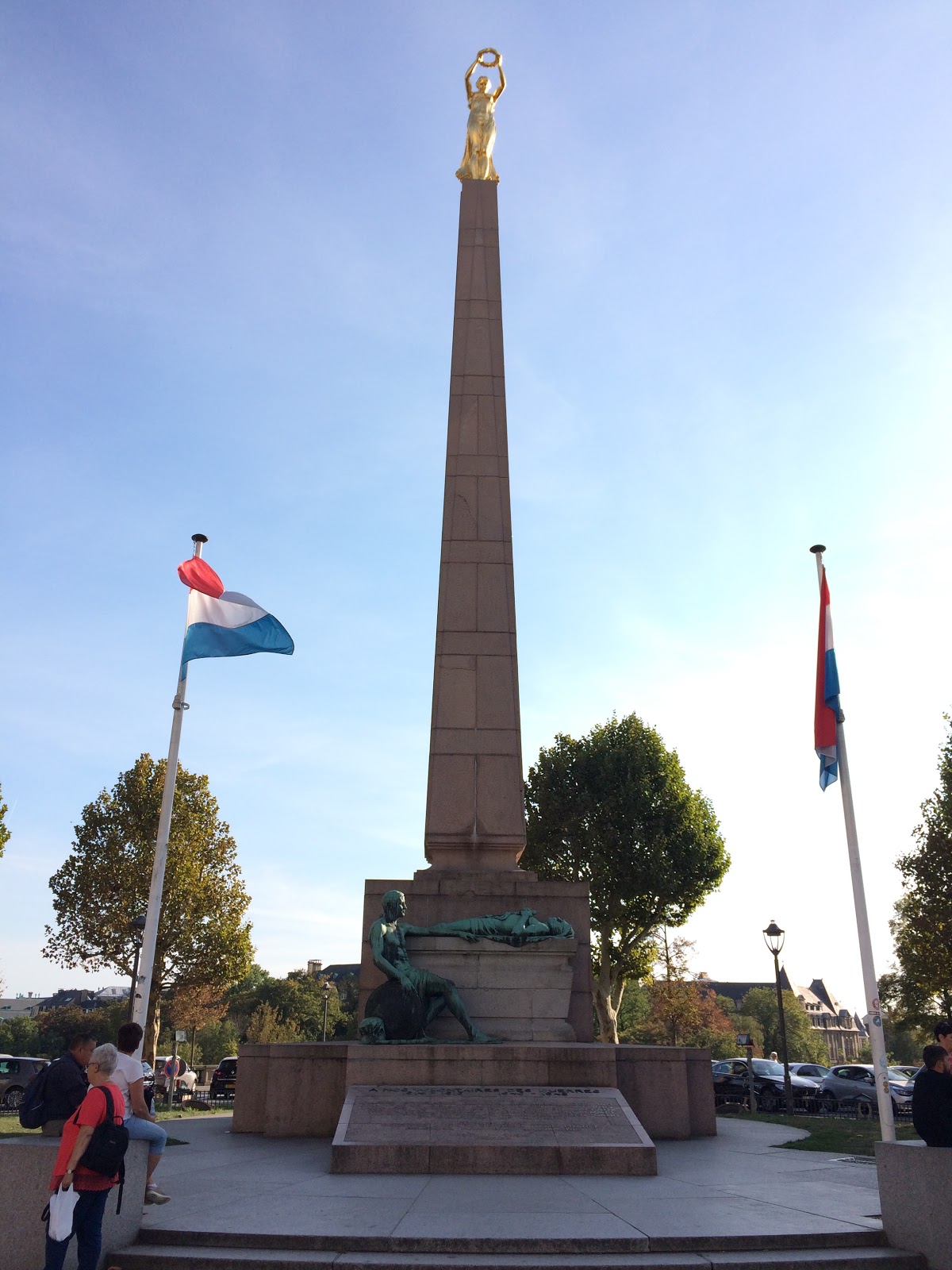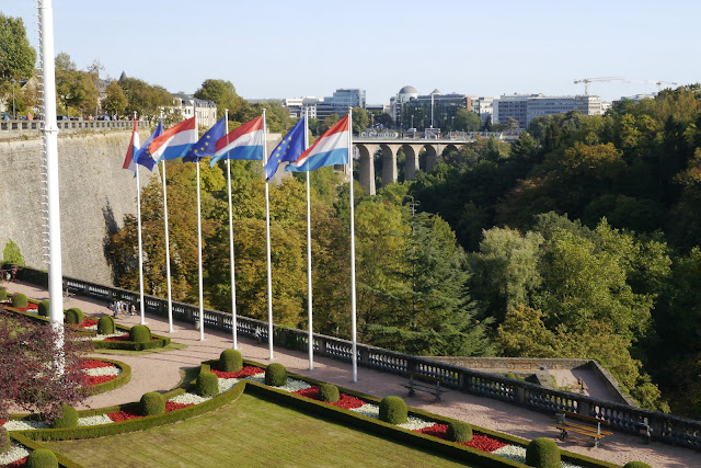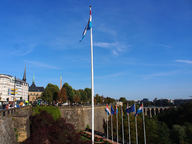 ▲繼續朝著廣場走,遠遠就可見到憲法廣場上插滿了盧森堡國旗