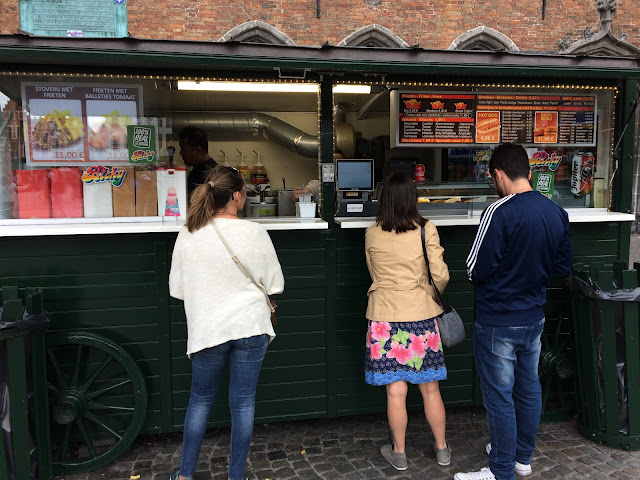 回到地面,鐘樓門口有個賣薯條的攤子,比利時薯條也很有名,嚐嚐看吧!
