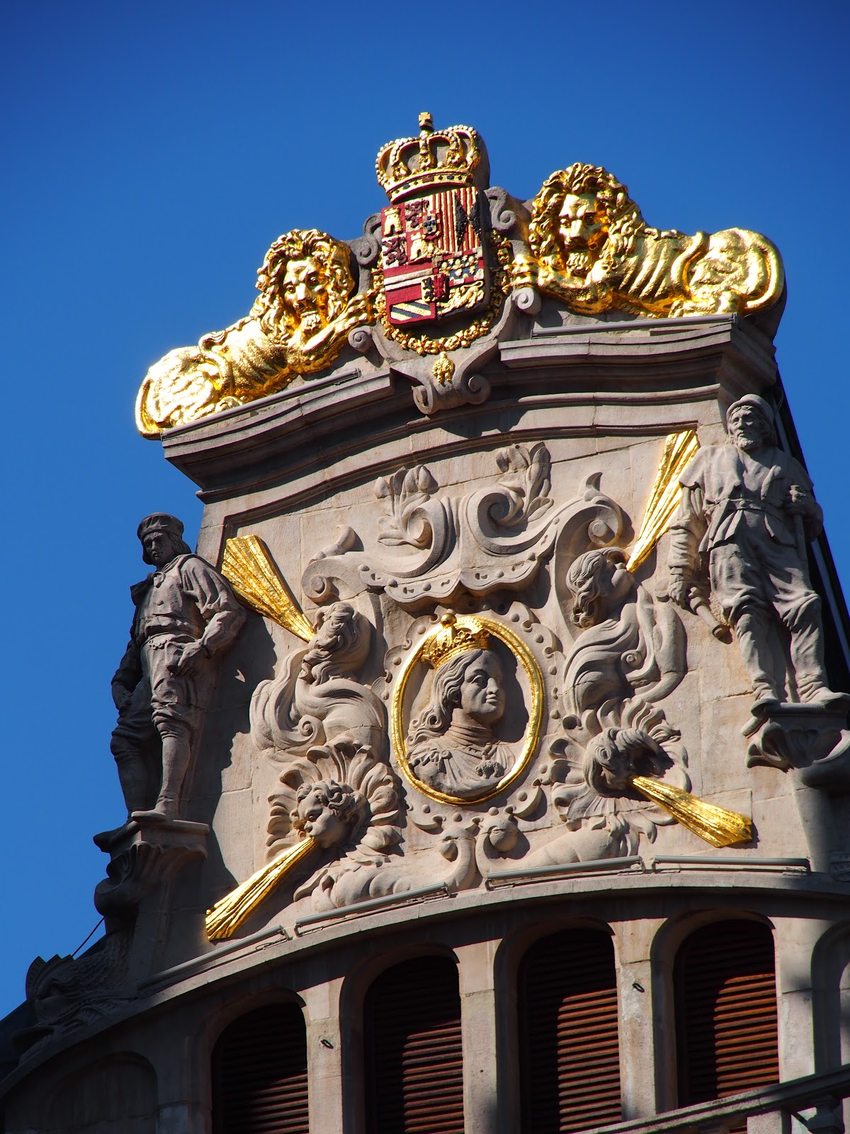 黑色石板上是父親和女兒的鍍金青銅肖像,兩人都戴著王冠,查理全副盔甲,戴著金羊毛騎士團的裝飾。